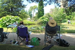 The first day of this holiday was the hottest day of the year at 33 degrees. As you can everyone is getting some much needed shade under the trees. Only one hardy soul sat in the sun all day long. We also had a good time at Symonds Yat and at Tintern Old Station and you can see Grahame putting the finishing touches to his picture. One evening the group were asked to judge the Classic Car and the winner was a Hillman Minx.